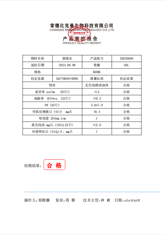 110702069 比克曼生物 蒸餾水 500ml 瓶 20230608