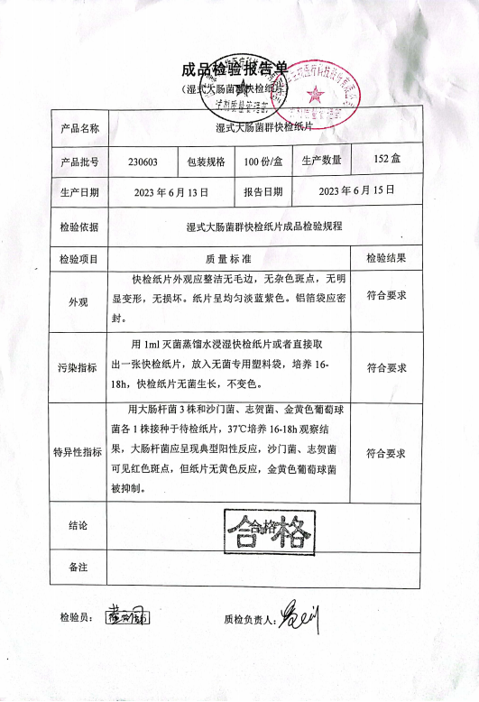 康華 濕式大腸菌群快檢紙片 100份盒 160711012 230603
