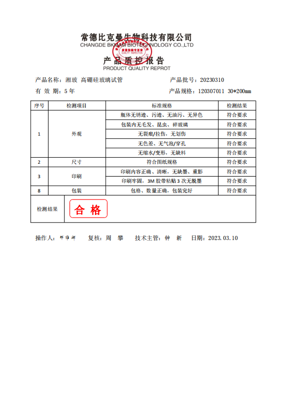 120307011 湘玻 ?高硼硅玻璃試管 30x200mm 4個包 20230310