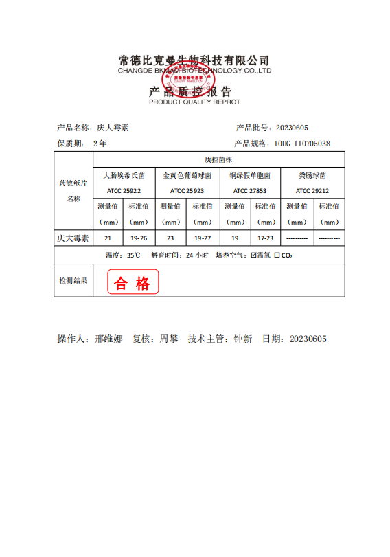 110705038 比克曼生物 慶大霉素 10UG 20片瓶 20230605