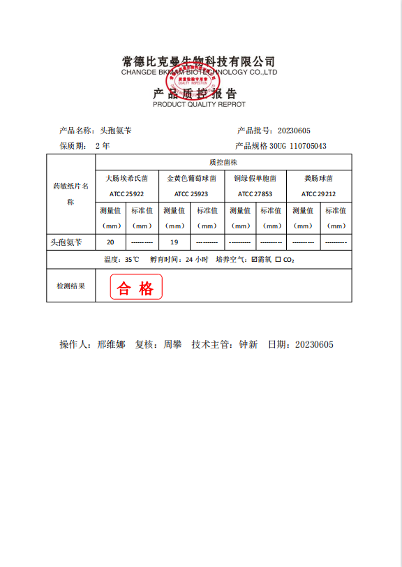 110705043 比克曼生物 頭孢氨芐 30UG 20片瓶 20230605