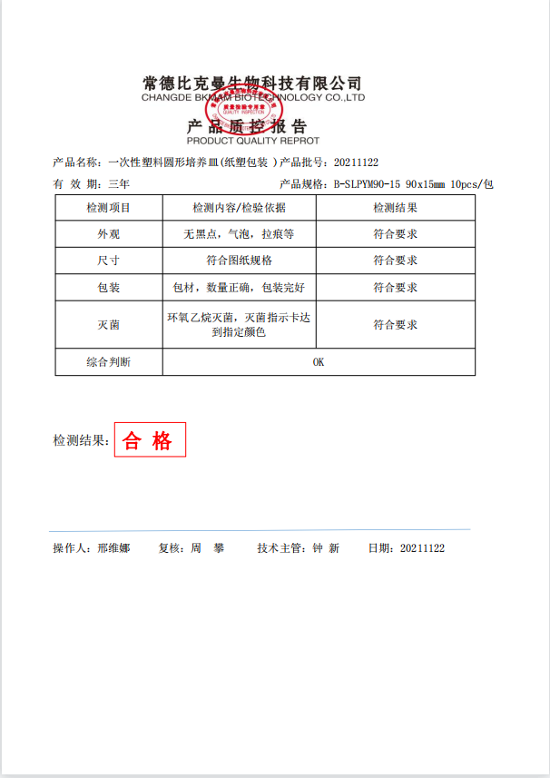 一次性圓形塑料培養(yǎng)皿 (紙塑包裝) 90x15mm 10個袋 B-SLPYM90-15 20211122