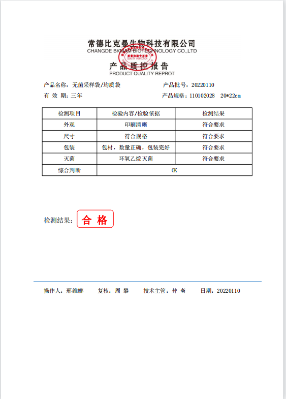 立式無菌采樣袋 20x22(帶壓條) 100個裝 110102028 20220110