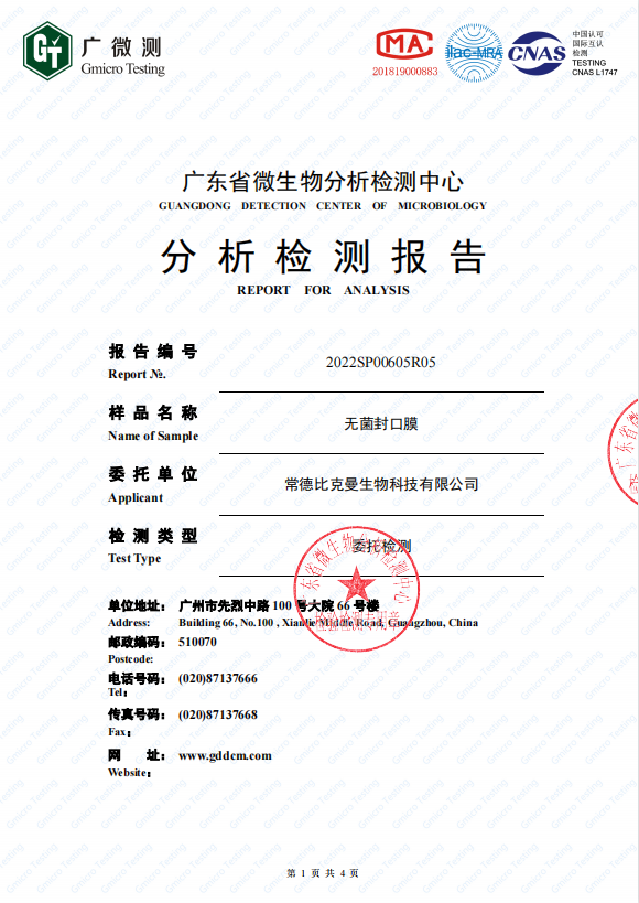 第三方報(bào)告 2022SP00605R05-無菌封口膜 20220110