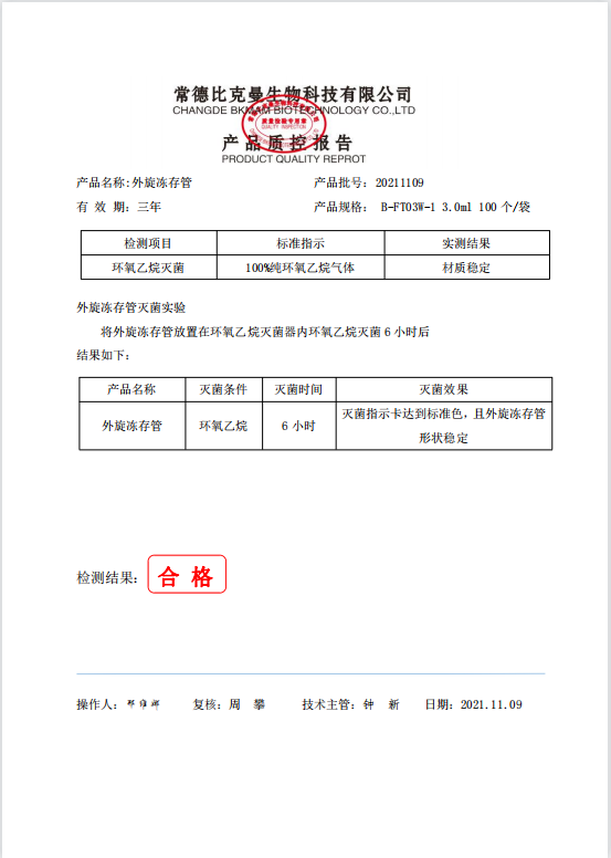 外旋冷凍管 (凍存管) 3.0ml 100個袋 B-FT03W-1 20211109 滅菌報告
