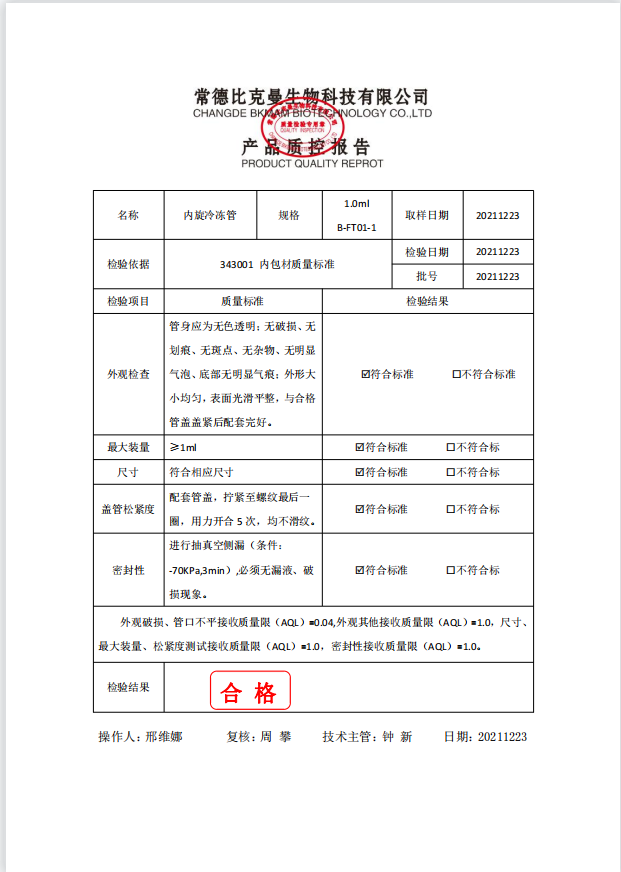 內(nèi)旋冷凍管 (凍存管) 1.0ml 100個袋 B-FT01-1 20211223