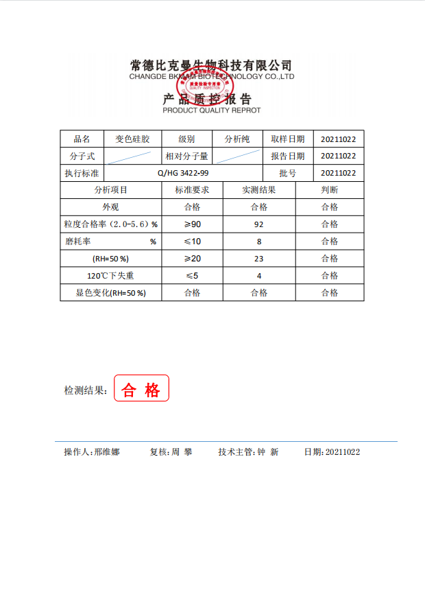 比克曼生物 變色硅膠 AR分析純 500g瓶 110702005 20211022