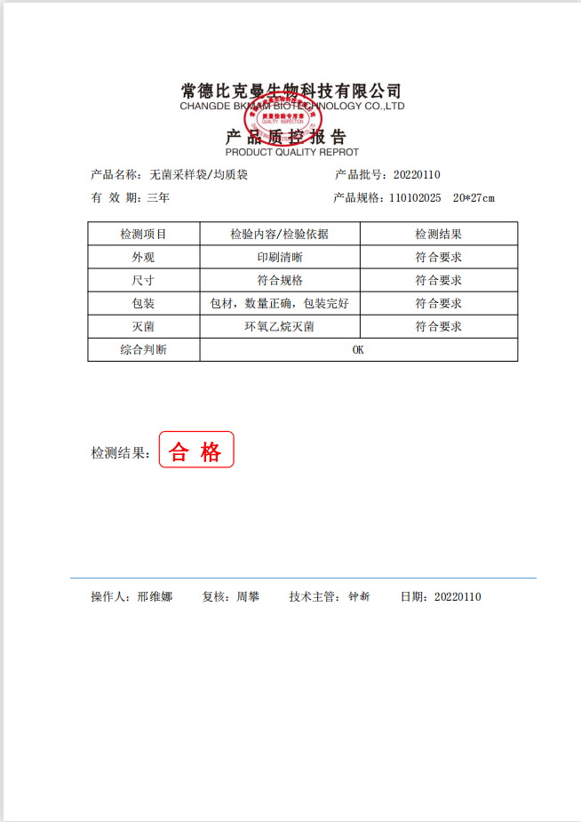 立式無菌采樣袋 20x27 (有印刷無LOGO帶壓條) 100個裝 110102025 20220110