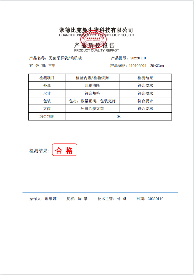 立式無菌采樣袋 20x32(帶壓條) 100個(gè)裝 110102004 20220110
