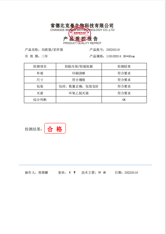 立式無菌采樣袋 30x40 (有印刷無LOGO帶壓條) 50個(gè)裝 110102014 20220110