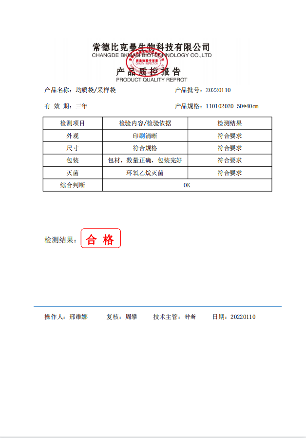 無菌采樣袋 50x40 (有印刷無LOGO帶壓條) 50個裝 110102020 20220110