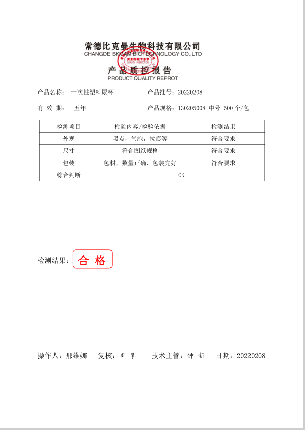BKMAM 一次性塑料尿杯 500個包 130205008 20220208