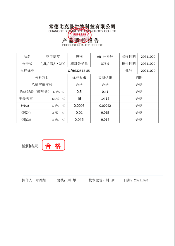 比克曼生物 亞甲基藍 AR分析純 25g 110702059 20211020