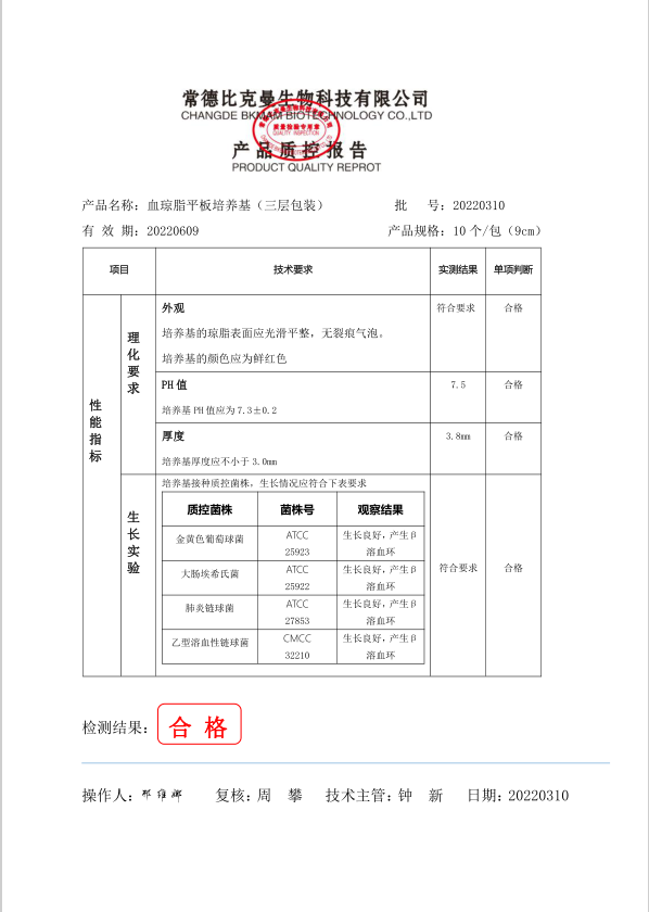 比克曼生物 血瓊脂平板培養(yǎng)基 (三層包裝)9cm 10個(gè)袋 110704011 20220310