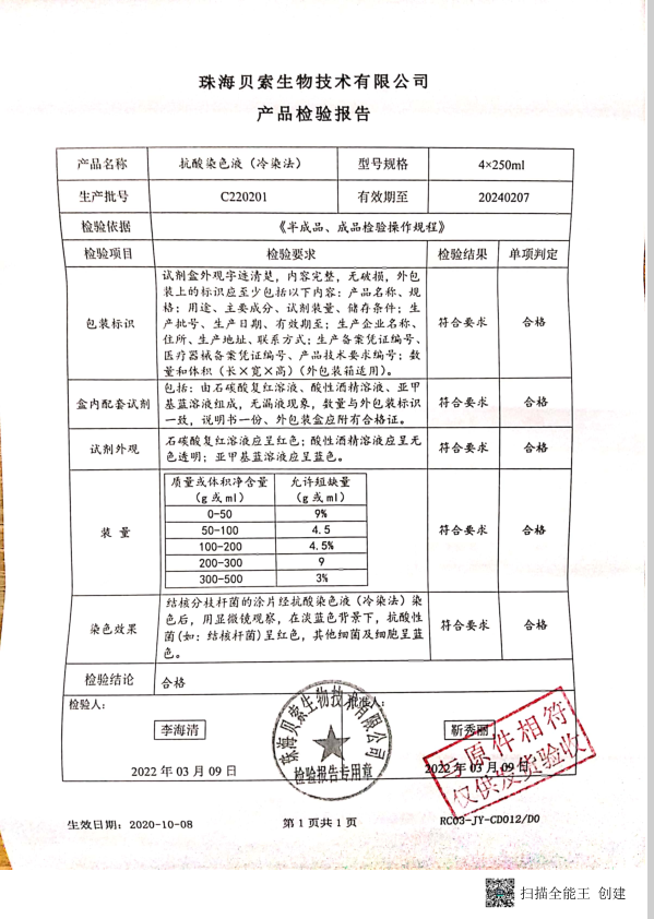 貝索 抗酸染色液(冷染法) 4x250ml C220201