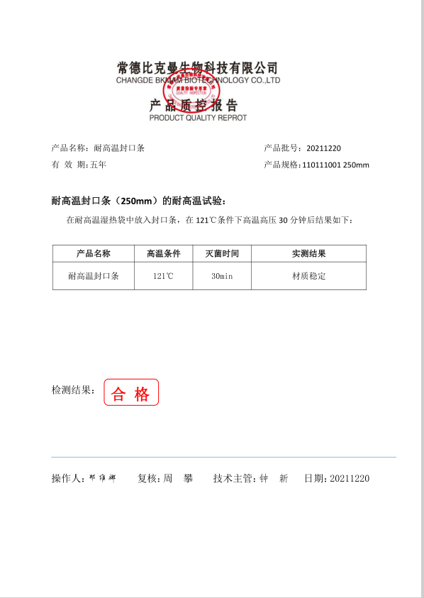 比克曼生物 耐高溫封口條250mm 50根包 110111001 20211220