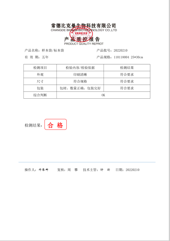 比克曼生物 樣本袋 25x30cm 100個 袋 110118004 20220210