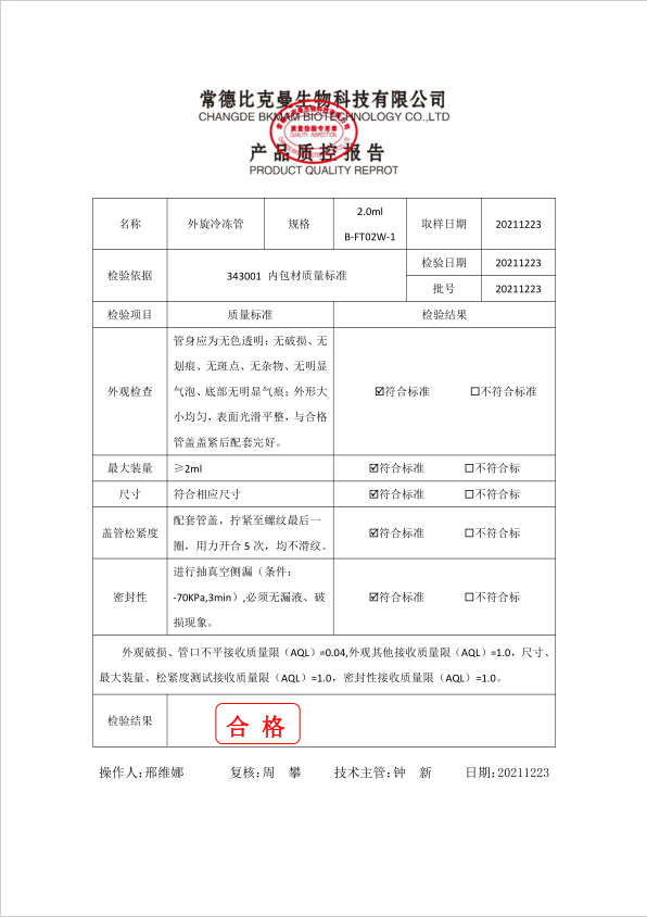 外旋冷凍管 (凍存管) 2.0ml 100個(gè)袋 B-FT02W-1 20211223