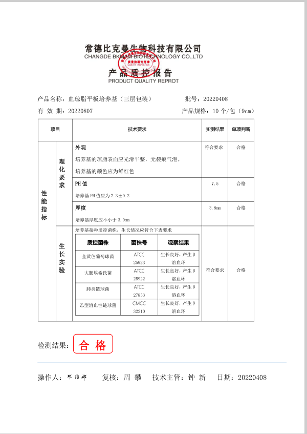 比克曼生物 血瓊脂平板培養(yǎng)基 (三層包裝)9cm 10個袋 110704011 20220408