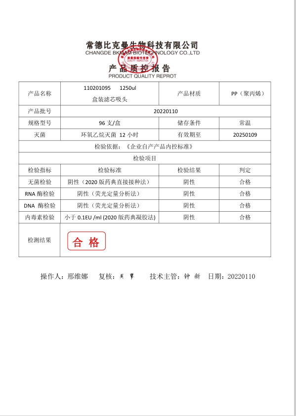 盒裝濾芯吸頭 1250ul 盒裝濾芯吸頭 96支裝 110201095 20220110