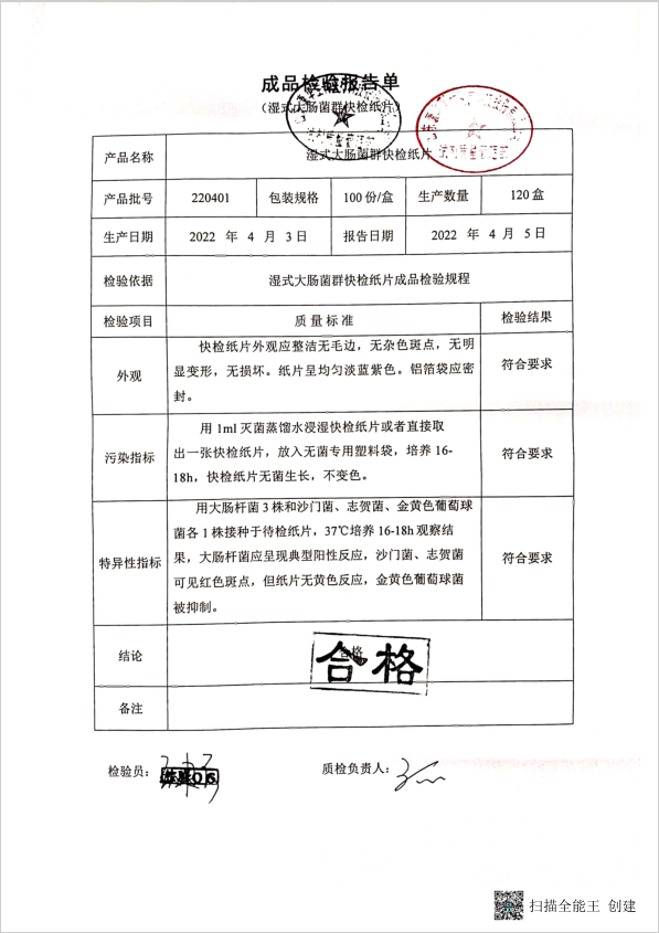 康華 濕式大腸菌群快檢紙片 100份盒 160711012 220401