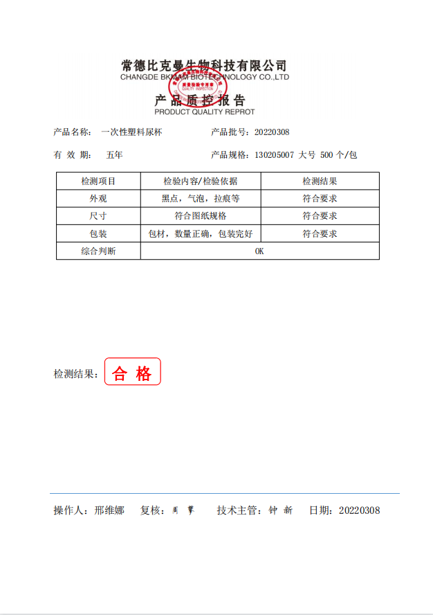 BKMAM 一次性塑料尿杯 500個包 130205007 20220308