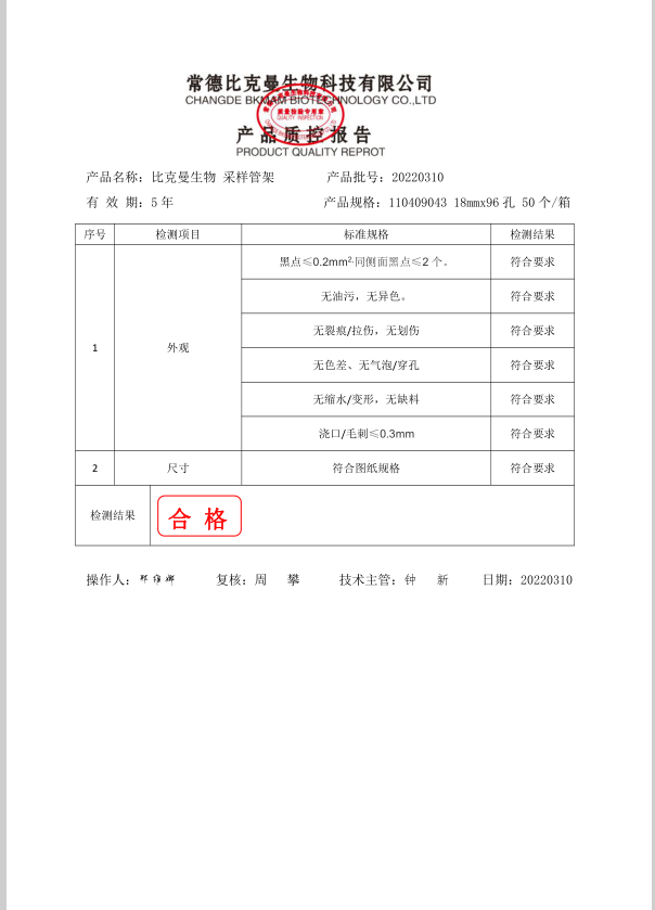 比克曼生物 采樣管架96孔 18mmx96孔 PP 110409043 20220310