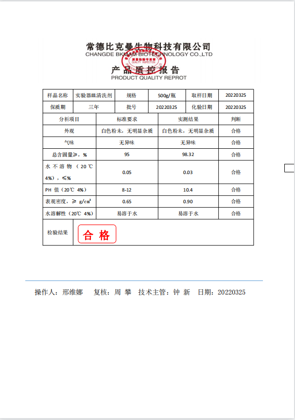 比克曼生物 實驗器皿清洗劑 500g瓶 110702045 20220325