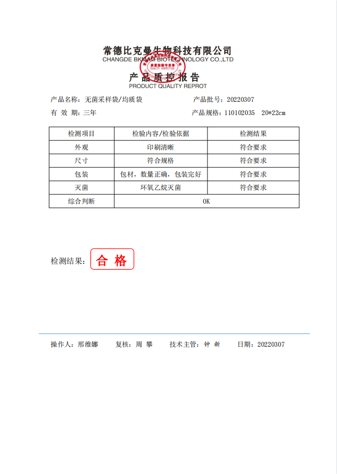 立式無菌采樣袋 20x22(有印刷無LOGO帶壓條) 100個裝 110102035 20220307