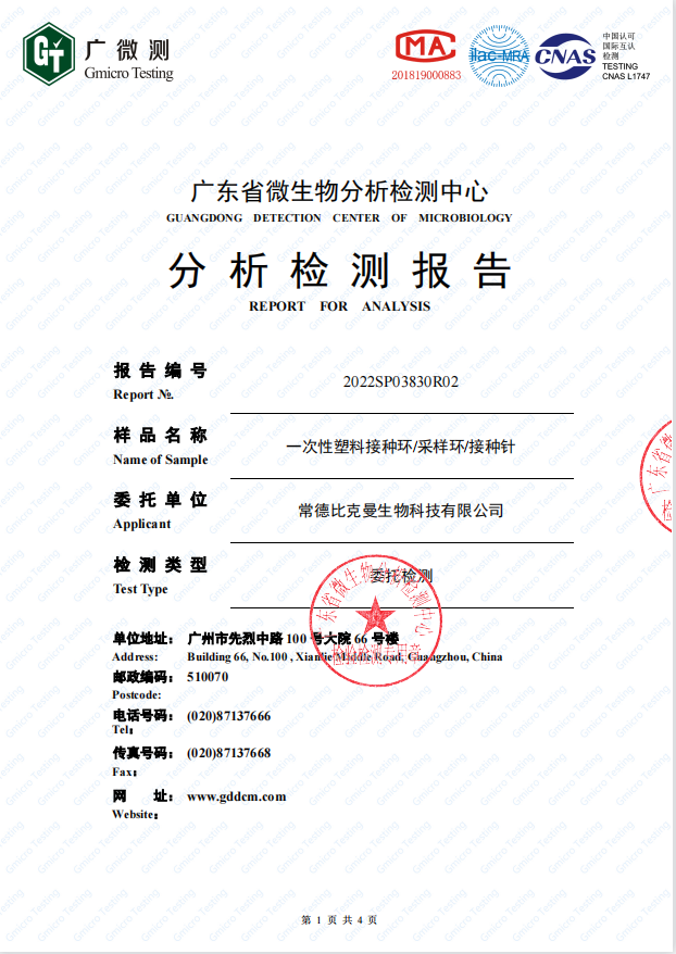 第三方報(bào)告 2022SP03830R02一次性塑料接種環(huán)&采樣環(huán)&接種針 20220408
