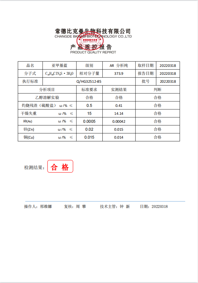 比克曼生物 亞甲基藍(lán) AR分析純 25g 110702059 20220318