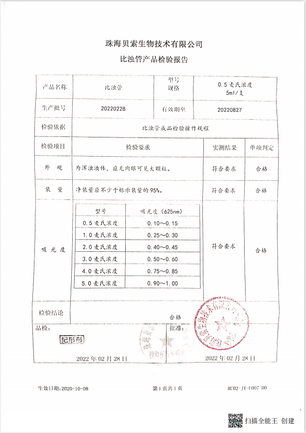 貝索 麥氏比濁管 (0.5濃度5支(5支盒) BC1115A 20220228