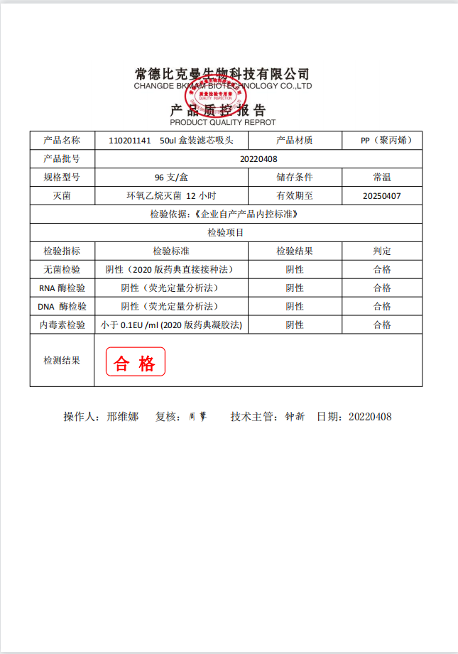 盒裝濾芯吸頭 50ul 盒裝濾芯吸頭 96支裝 110201141 20220408