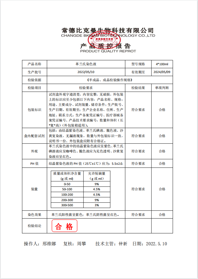 比克曼生物 革蘭氏染色液 100ml4支裝 110703002 20220510