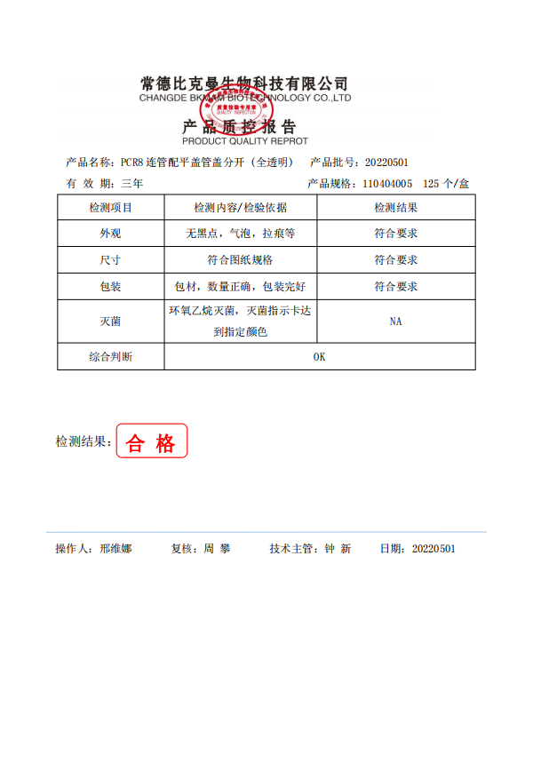 PCR八連排管 0.2ml PCR8連管配平蓋管蓋分開 (全透明) 125個盒 110404005 20220501