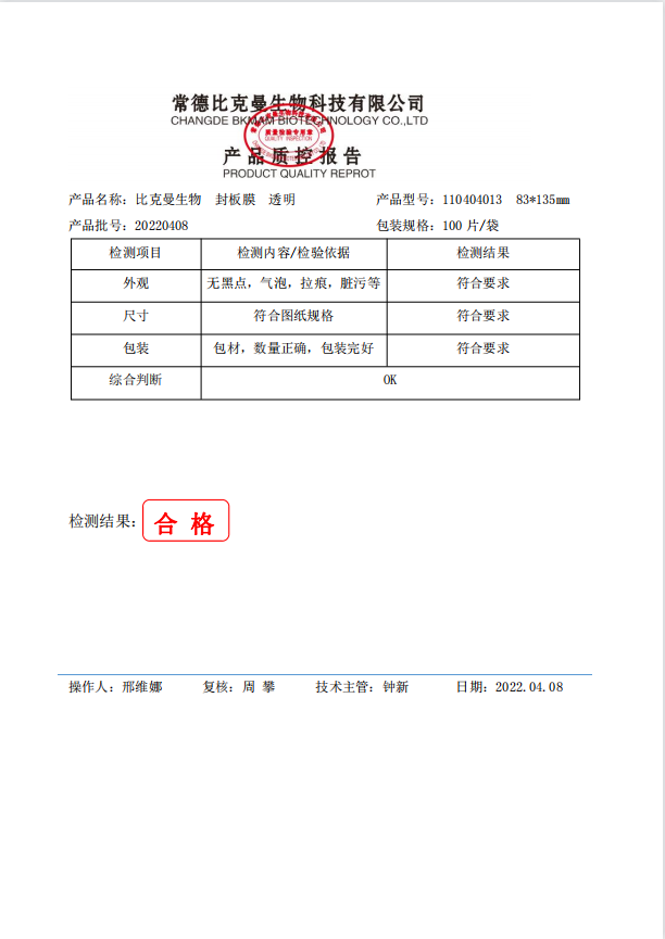 比克曼生物 封板膜 透明 83x135mm 100片袋 110404013 20220408