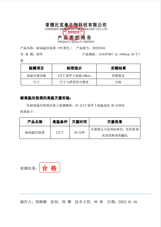 耐高溫垃圾袋 黃色 41.5x60cm (PE復(fù)合膜材質(zhì)) 50個(gè)袋 110107007 20220104